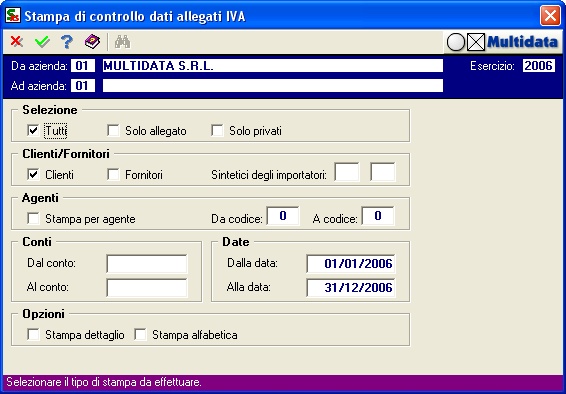 Il programma offre la possibilità di produrre un tabulato per controllo dei Dati che andranno a far parte degli Allegati Clienti e Fornitori. Molto utile anche per controllo del fatturato, dei documenti emessi, degli importi imponibili e non, con possibilità di dettaglio di tutte le fatture che andranno a comporre la base dei dati degli allegati.